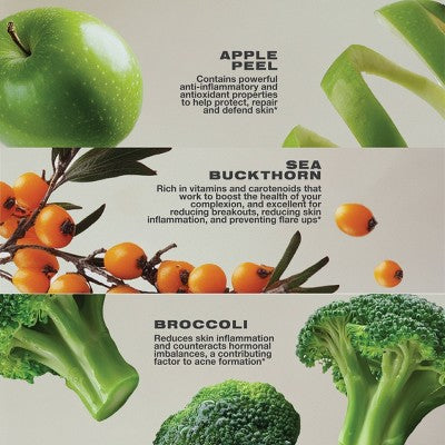 Meet Clarity: A 3-in-1 plant-based skincare formula to combat acne, improve texture, and calm redness in a convenient sugar-free gummy. This supplement targets pimples, blackheads, and hormonal acne for smoother skin by regulating oil production and reducing inflammation. Formulated with vegan superfoods like sea buckthorn, apple peel, and broccoli for women and men ages +13 and up.