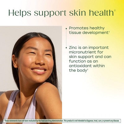 Show your immune system some love with MegaFood Zinc tablets. This everyday immune support supplement offers 22.5 mg of high potency Zinc per serving to contribute to a healthy immune system and provide antioxidant support. Zinc also plays an important role in supporting healthy skin and tissue development.+ This formula is made with 44 mg of real food per serving including spinach, parsley leaf, carrot, broccoli, and beetroot. These Zinc supplements are Vegan, Gluten-free, Kosher, Non-GMO, tested for 150 pesticides, and made without milk, eggs, peanuts, tree nuts, soy, wheat, fish, shellfish, and sesame.