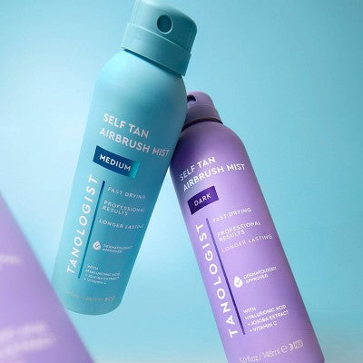 The Tanologist Self Tan Airbrush Mist is an ultra-hydrating self-tanning mist that gives you a natural-looking, streak-free tan. This fast-drying formula brings you professional results at home. Infused with skincare ingredients like hyaluronic acid, jojoba extract and vitamin c, this tanning spray helps to brighten, soften and hydrate the skin for a tan that lasts. The lightweight, 360 airbrush mister gives a touch dry application within seconds for your quickest, easiest self-tanner application. Just mist the product directly onto skin and blend lightly with a tanning mitt. Your tan will start to develop in just 1-4 hours. Dermatologist tested and non-comedogenic, this airbrush mist is suitable for all skin types and tones.