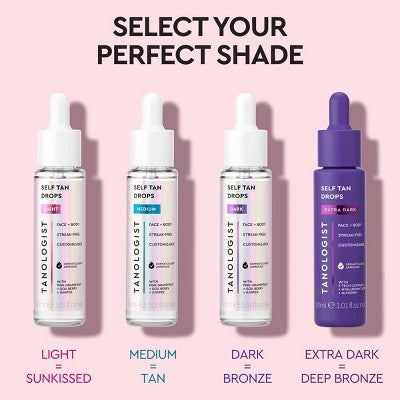 The Tanologist Self Tan Drops were created for both the face and body to provide a streak-free, natural looking tan. Our customizable formula is perfect for both new and experienced tanners, allowing you to control the level of tan you desire with every drop. These concentrated face tanning drops need to be added to your moisturizer for easy application. Infused with skincare ingredients like pink grapefruit, goji berry and juniper, these self-tanner drops help to brighten, soften and hydrate the skin. Our face and body tanning drops put you in control with the amount of drops you add – the more drops you use, the deeper the tan. Start by adding 3-4 drops to your favorite moisturizer. Increase usage until desired tan is achieved. Dermatologist tested and non-comedogenic, these self-tanning drops are suitable for all skin types and tones.
