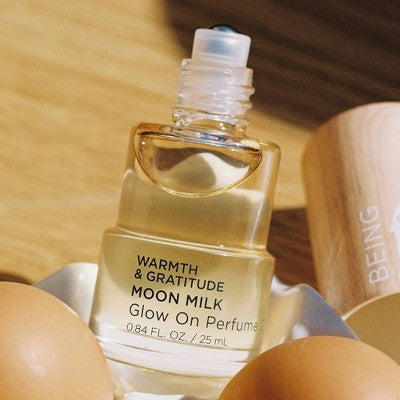 Meet your everyday wellness rituals, infused with mood-boosting scents. You asked, and she’s back - Moon Milk returns in our LIMITED EDITION Glow-On Perfume Oil. Crafted with safflower oil, this concentrated fragrance delivers a scented self-care moment, wherever you are.