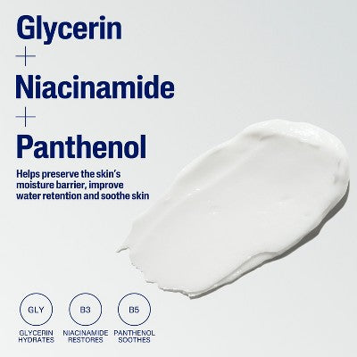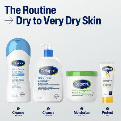 Care for your dry to very dry skin with CETAPHIL Moisturizing Cream, a non-greasy, moisture rich cream for the whole body. Enriched with sweet almond oil and vitamin E, it immediately comforts and instantly hydrates dry, sensitive skin. Formulated with a new blend of key ingredients: hydrating glycerin, panthenol (vitamin B5) to hydrate, soothe and preserve the skin barrier, and niacinamide (vitamin B3) to help smooth skin texture and retain skin moisture barrier. For long lasting hydration, this extra strength face & body moisturizer binds water to the skin to deeply replenish the skin's moisture and prevent moisture loss, hydrating and soothing skins dryness for 48 hours and completely restoring the skin's moisture barrier in one week. Ideal for very dry areas of skin on the hands, feet, elbows and knees, leaving your skin feeling soft, smooth and nourished. This fragrance free, paraben free, and sulfate free formula will not clog pores and is clinically tested for even the most gentle skin. Effectively defends against 5 signs of skin sensitivity..