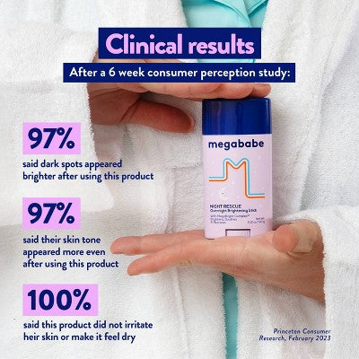 Were you caught without your Thigh Rescue? Do you suffer from past chafe trauma? Either way, friction is a real pain in the thigh and even when the pain is gone, the resulting discoloration is often here to stay. Not anymore! Now you can brighten discoloration and calm irritation all while you snooze, with Night Rescue. In just one night, soothing and hydrating botanicals restore unhappy skin. Over time, clinically proven MegaBright Complex™ improves discoloration and uneven skin texture. The multi-tasking stick swipes on clear and is lightly scented with lavender. Incorporate Night Rescue into your bedtime routine and get ready to glow, all while catching those beauty Zzz's!