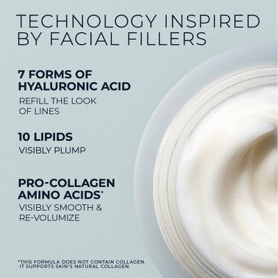 Experience a 72hr hydration refill for clinically proven, younger looking skin. Inspired by facial fillers, RoC’s Hydration+ Moisturizer uses 7 forms of Hyaluronic Acid to refill the look of lines and wrinkles in minutes. Pro-Collagen Amino Acids* work with continued use to actively smooth for the look of re-volumized, deeply hydrated skin. 97% had lines appear refilled in minutes. 100% of dry skin symptoms were noticeably reduced including dullness, rough texture, flakiness & tight feel**. Fragrance-free. Paraben-free. Cruelty-free. For all skin types. Lightweight, silky-soft texture. Fast-absorbing. Non-greasy feel/finish. Won’t clog pores. Hypoallergenic.