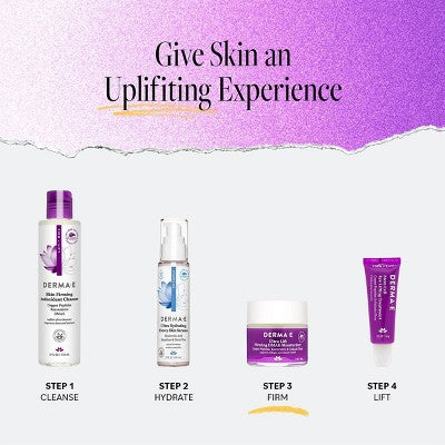 Defy time and elevate your skin's youthful renewal with DERMA E's Ultra Lift Firming DMAE Moisturizer. Clinically proven to combat signs of aging with an advanced hydration formula that improves elasticity and diminishes the appearance of lines and wrinkles. Infused with DMAE to tighten and tone, and Resveratrol to brighten dullness. Copper Peptides enhance firmness by boosting collagen health, while Kakadu Plum improves overall texture. Skin is transformed with a smoother, softer, more youthful-looking appearance.
