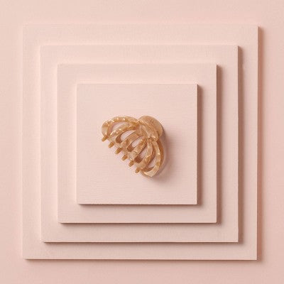 This sophisticated tortoise claw clip elevates your look in an instant. The pretty latte tortoise marble finish is beautiful and unique yet neutral enough to go with any outfit. Perfect for updos, half-up styles and more. Both lightweight and strong this claw is comfortable for all day wear on all hair types.