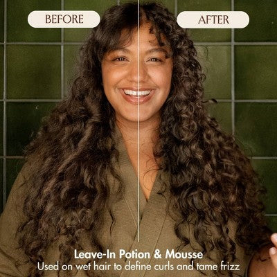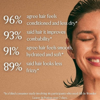Behold your hair hero. Our all-in-one, leave-in potion is built for anytime softening, detangling, frizz fighting, priming, hair styling, and perfuming. It’s versatile enough to use on both damp and dry strands –to prime and detangle for styling or to revive and refresh. Yes, it does all.
