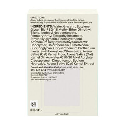 Aveeno Calm + Restore Triple Oat Serum designed for sensitive skin with nourishing oat goes beyond soothing & restores skin's natural moisture barrier. The hydrating face serum absorbs quickly & leaves sensitive skin feeling soothed & hydrated after just one use. In fact, 92% agreed skin felt instantly smooth. Lightweight serum with a Triple Oat Complex soothes & nourishes skin plus calming feverfew, known to effectively calm skin. The hypoallergenic, non-comedogenic formula has been tested on sensitive skin & is free of fragrances, parabens, phthalates, dyes & alcohols. From a dermatologist-recommended brand for over 70 years, Aveeno Calm + Restore Triple Oat Facial Serum now in a convenient pump bottle leaves skin feeling soft and supple. To use in your daily skincare routine, apply a dime size amount onto a dry, clean face before moisturizing.