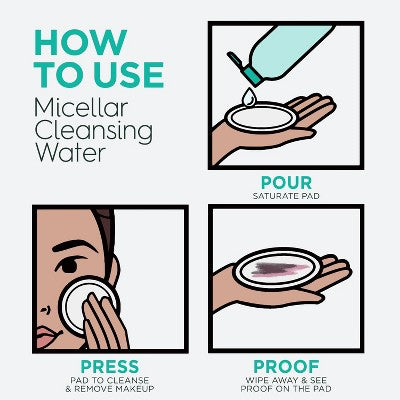 Instructions: Pour onto cotton pad until fully saturated. Gently wipe pad across face to cleanse and remove face makeup. To remove eye makeup, hold pad over closed eyelids for a few seconds, then gently wipe away. Use daily. No need to rinse. Removes mascara better than the leading face make up wipes*.