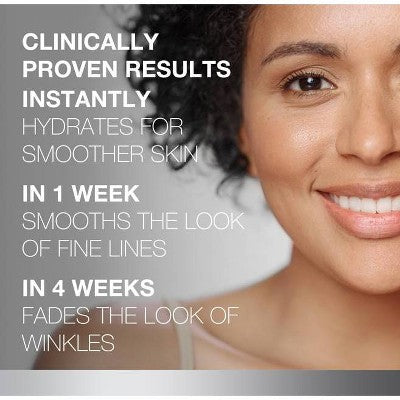Help hydrate your skin while improving the look of fine lines and wrinkles with Neutrogena Rapid Wrinkle Repair Retinol Anti-Wrinkle Night Cream with Hyaluronic Acid. Rapid Wrinkle Repair night cream delivers our uniquely stabilized retinol deep within skin's surface to quickly fight fine lines and wrinkles and delivers clinically-proven results. Face and neck cream instantly hydrates for smoother skin, and smooths the look of fine lines in one week and fades the look of wrinkles in just four weeks. The anti-age face cream formula contains retinol, a powerful, dermatologist-proven form of vitamin A, to fight fine lines, dullness, wrinkles and dark spots. Night cream also contains hyaluronic acid to add plumping moisture to help hydrate and rejuvenate the look of skin. This retinol moisturizer is suitable for daily use and is formulated without parabens, mineral oil, and dyes and comes from the #1 retinol brand used most by dermatologists.