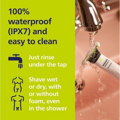 From pits to pubes, the Philips Norelco OneBlade Intimate is designed for your sensitive, intimate areas. The unique skin protector gives an extra layer of protection from nicks and cuts. Want to leave a little hair? Just click on the trimming body comb. Unique OneBlade technology cuts mows through hair at a speed of 100x per second, the glide coating and rounded tips protect your oh-so-tender skin under there and down below. The unique dual-sided SkinProtect blade also allows you to easily shave up or down to trim or style with confidence. Also included is a detachable 3mm body comb that makes it fast and easy to trim intimate and body hair. OneBlade Intimate SkinProtect blades are 100% waterproof- so feel free to shave while bathing or showering if that's what you prefer. Dry shaving's OK too, with or without foam. Just rinse under running water to clean. Our blades are made from stainless steel that's durable enough to last up to 4 months* (that's just 3 blade replacements per year!). Includes 2 Intimate Replacement Blades. Packaging uses plastic alternative such as FSC-certified paper, aluminum, steel, or glass with great potential to be widely circular for majority of product packaging. This item's packaging is made with up to 100% plastic alternative materials. 2 Replacement Blades.