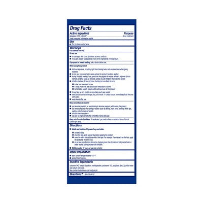 Differin Gel Acne Treatment contains adapalene, an Rx-strength acne-fighting retinoid that helps clear breakouts where they start (works deep into pores in 5 minutes), helps prevents new acne from forming, and as a result, can restore skin’s overall tone and texture. Adapalene is the first over-the-counter active ingredient for acne in more than 30 years. It clears acne with the power of an Rx without the prescription, prevents breakouts, blackheads, whiteheads, blemishes and clogged pores, and can be used to effectively treat acne, or maskne, caused by wearing face masks or facial coverings. When used as directed, you could start to see results in as little as 1 week, and when used every single day, Differin Gel can help reduce up to 87% of acne in just 12 weeks (Cunliffe et al 1998, Galderma Laboratories).Key Ingredient:Adapalene