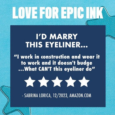 This epic glitz hits! New Epic Ink Glitz metallic liquid liner. Ultra precise, 1-swipe glitter liner from a brush tip pen! Waterproof, flake-resistant. Up to 24hr wear. The NYX Professional Makeup Epic Ink Liner family just got even more epic with this 1-swipe, highly-reflective glitter liner for saturated lines that last. Now in 6 new glitzy shades, including this blue eyeliner!