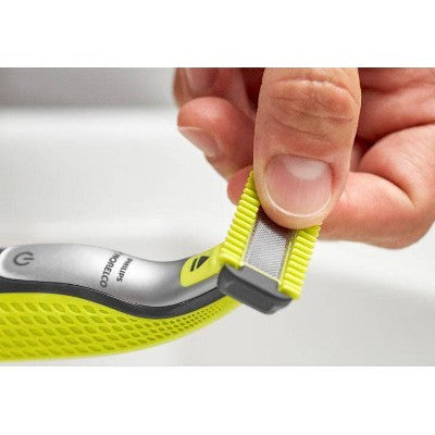 The Philips Norelco OneBlade replacement blade trims, edges, and shaves any length of hair, even on body. This replacement pack includes one blade for your face or body, plus a skin guard for sensitive areas and a body comb. It is compatible with all OneBlade, OneBlade Face + Body, and OneBlade Pro handles. Forget about using multiple tools. OneBlade does it all. Includes 1 replacement blade for face or body, 1 skin guard, and 1 body comb. Click-on skin guard for extra protection on sensitive areas. Attach body comb (3mm) for speedy trimming on larger areas. Each replacement blade lasts up to 4 months. (For best shaving experience. Based on 2 full shaves on face per week. Actual results may vary.) Fits on all OneBlade, OneBlade Face + Body, and OneBlade Pro handles.