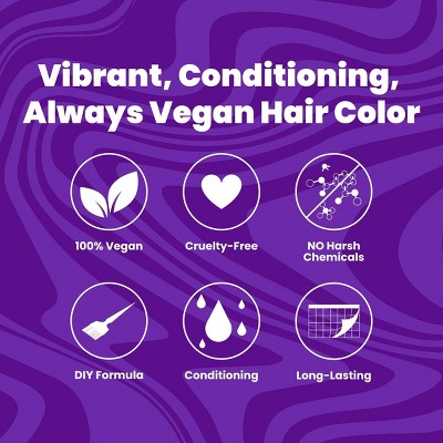 Ready to stop and smell the violets? Violet Dream will give you a hint of spring in any season! This floral purple color does have some strong magenta undertones and will generally fade into a pink shade. As a highly pigmented color, Violet Dream will give a deep warm tint to darker shades of hair, and will cover up brassy tones without any issues. It will turn out best on hair that is around a level 7 or lighter!