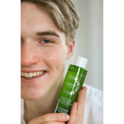 LUMENE’s Nordic Clear [Tyyni] Clarifying Liquid Exfoliant for oily, combination and blemish-prone skin gently exfoliates to reduce the look of pores, blackheads and blemishes and smoothen skin’s texture. Infused with balancing Nordic meadowsweet, calming Arctic roseroot and mildly exfoliating yet potent azelaic acid, this refreshing and bouncy liquid formula improves skin’s hydration level after cleansing and leaves skin fresh and balanced, neither oily nor dehydrated. It quickly sinks into the skin and preps it for next steps of a skincare routine. Suitable for everyday use. The liquid exfoliant is vegan, containing wild-crafted and upcycled ingredients. The packaging is made with recyclable and recycled material.