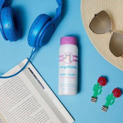Megababe Body Dust Top-to-Toe Powder is a natural, aluminum-free body sweat solution! Made with bacteria-fighting lavender and soothing chamomile, the ultrafine powder absorbs day-to-day sweat to help keep skin and clothing drier, longer.