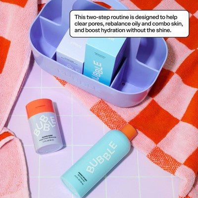 Face the day. Then wash it away. Power your shower with Bubble’s Clean Slate Shower Caddy and Routine for: Combo & Oily Skin. Cleanse with Fresh Start, then quench and rebalance with Cloud Surf’s light-as-air, water cream hydration. Plus, you can keep them both scrub-a-dub-ready in an exclusive shower caddy!